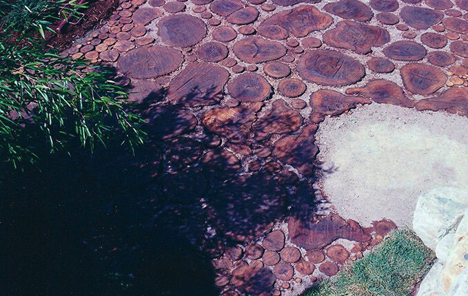 Patio and Walkways: Unique Real Wood Patio